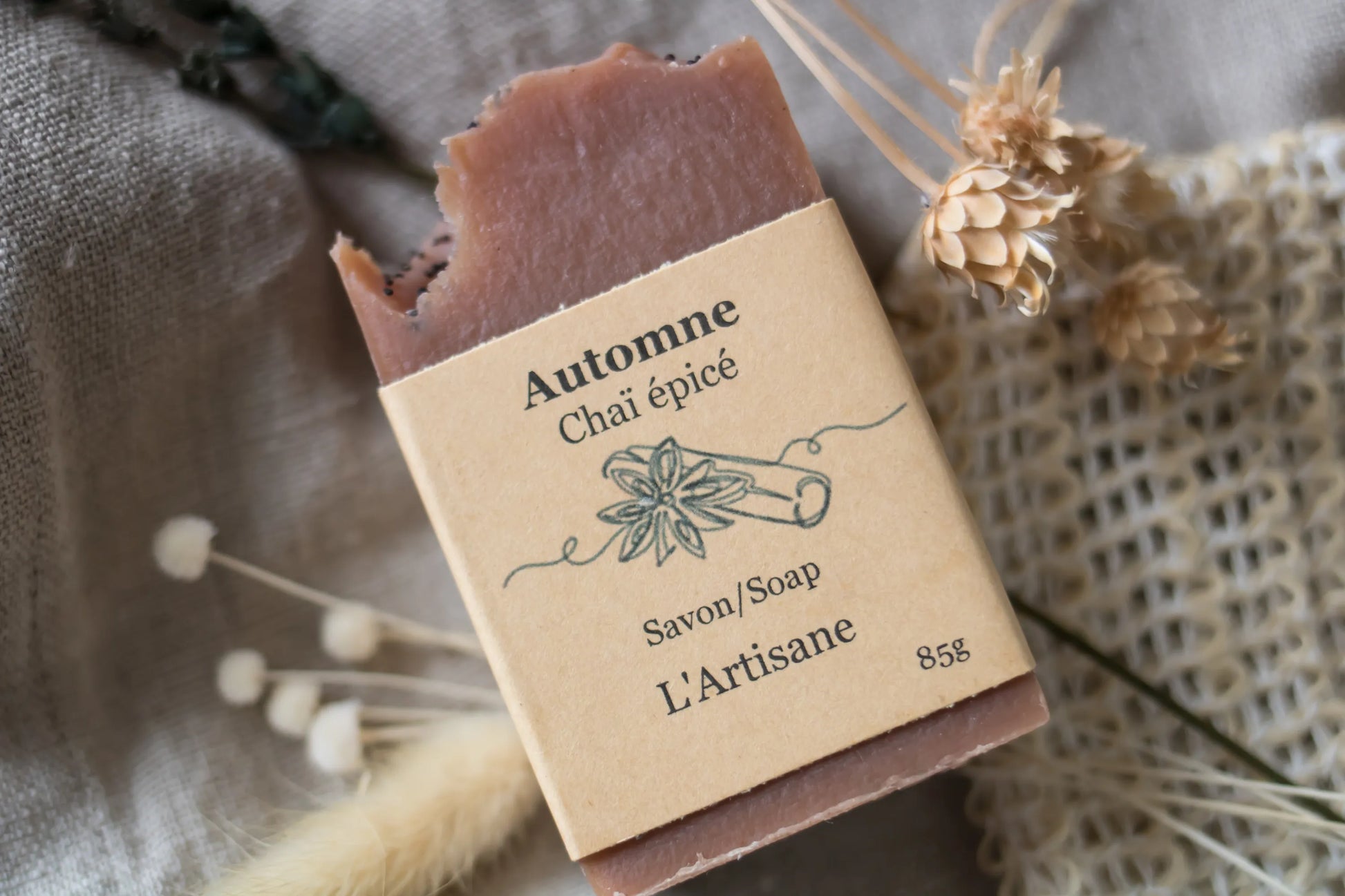 An autumnal stroll in the palm of your hand. The warm spices of chai envelop the skin in a soft and comforting fragrance. Red clay provides minerals and softness, while poppy seeds create a gentle natural exfoliant. Rich in organic oils and animal fats, Autumn intensely nourishes and awakens the senses. A soap particularly appreciated by men!