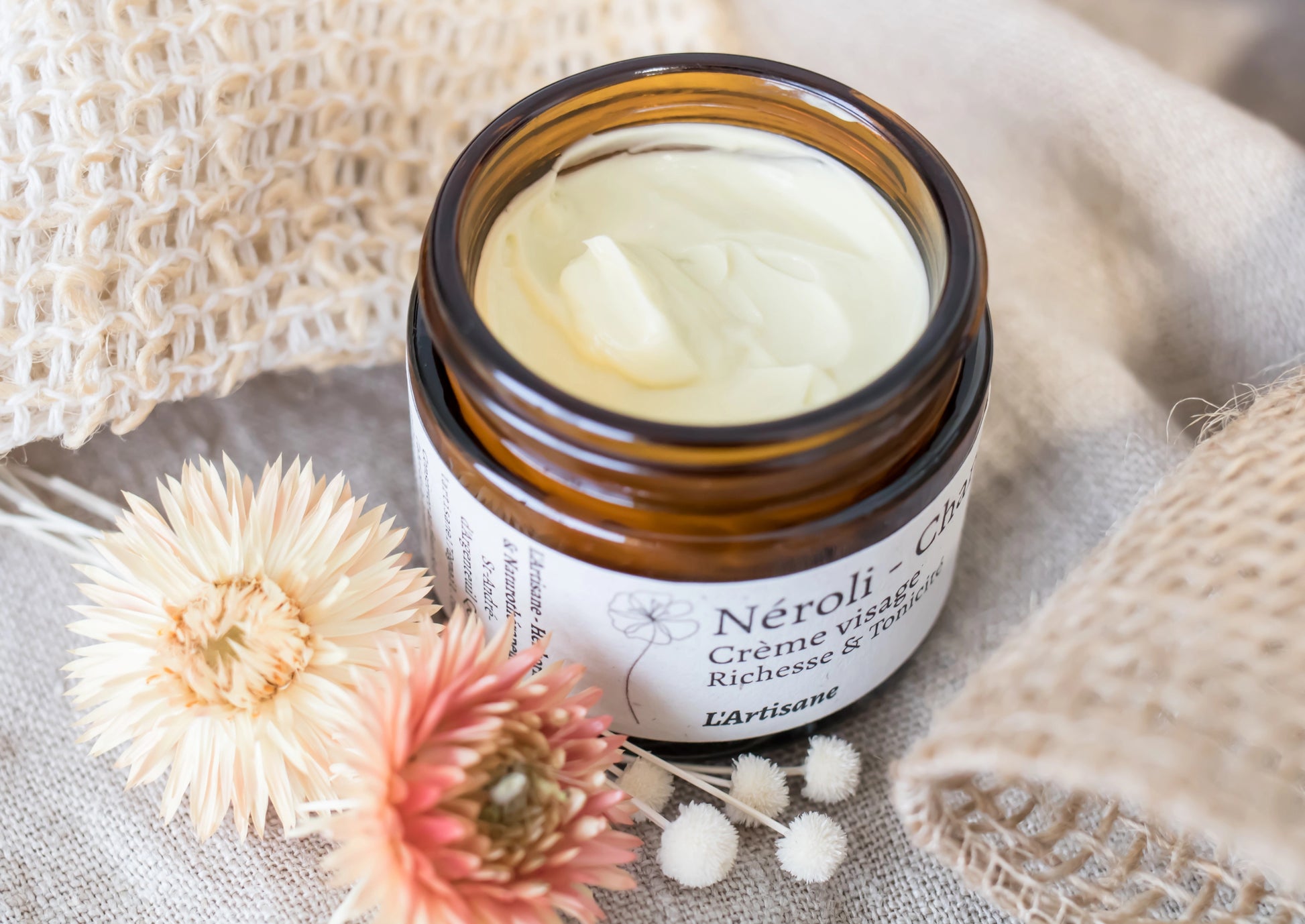 Neroli hydrosol, precious and delicately scented, provides a toning and soothing action. It harmonizes the skin, reduces redness, and offers a gentle sensation of floral freshness, while supporting the complexion's natural radiance.